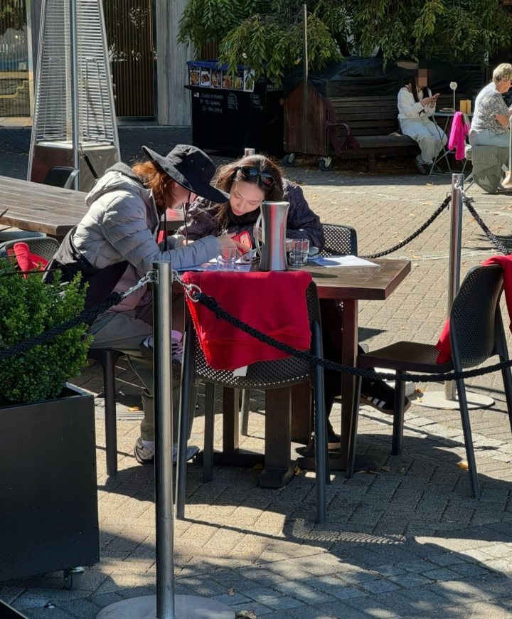 据网友共享的另外一张像片,她不是一个东说念主来的,还有一位一又友陪伴。两东说念主坐在一张桌子前,正在折腰看那一沓A4纸,情态相配专注。