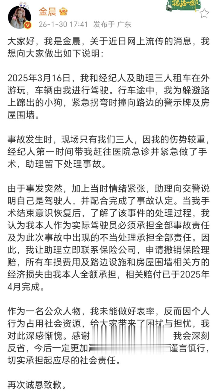 不外,本年1月,她在昨年3月发生的全部交通事故被八卦媒体曝光,激勉泛泛热议。自后,她公建立文致歉,并因此被罚金1500元。现在,这刮风云事件已历程去了,嗅觉对她影响不大。