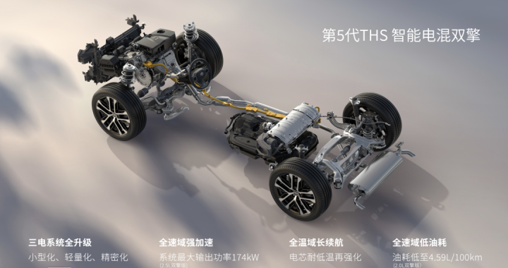 丰田第五代THS双擎照旧用三元锂替代了镍氢电板,放松了分量和体积,41%热恶果,电板容量在1.12-1.8kWh之间。以2.0L双擎为例,WLTC轮廓油耗为4.49L/100km,百公里加快约8.5秒。