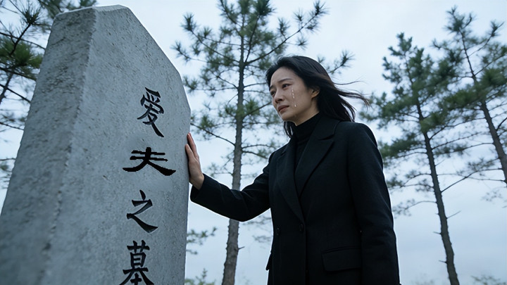 我站在墓碑前,轻轻抚摸着冰冷的墓碑,眼泪无声地滑落。