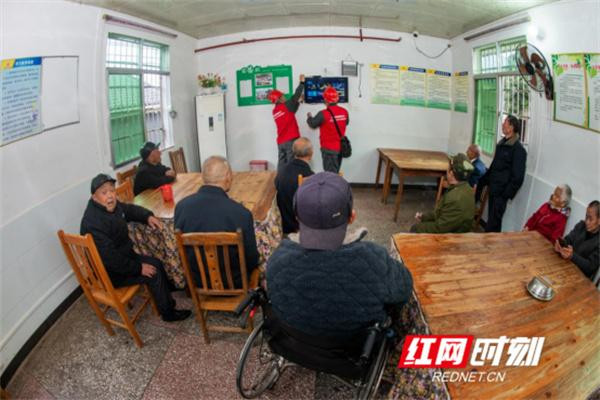 “松风”共产党员作事队队员正在搜检双牌站五里牌黄泥坡敬老院举止室电视野路。