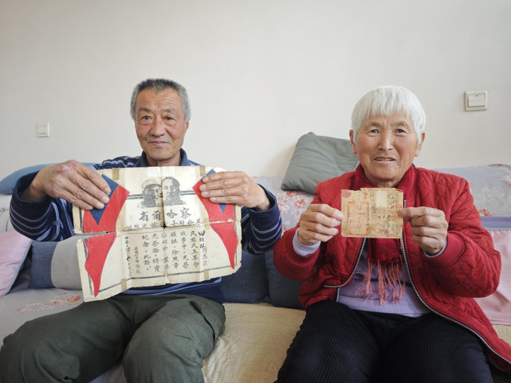 把柄老东谈主提供的印迹,记者又和村委会责任主谈主员来到田万学家访问。“没错,田维林是我二大爷。”田万学留心翼翼从柜子里取出义士证,这张1947年由时任察哈尔省东谈主民政府主席张苏签发的义士证照旧碎裂泛黄,部分笔迹蒙胧,遍布着用胶带打的“补丁”。