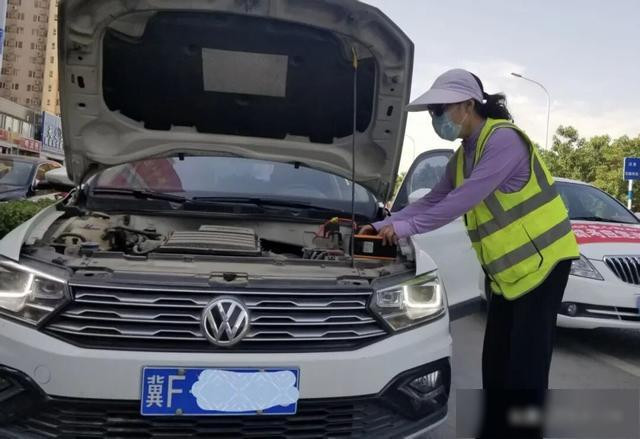 交通播送116号信息员冯薇支撑亏电车辆。受访者供图