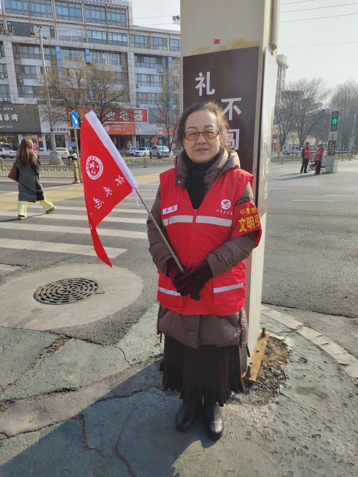 2026年3月16日上昼九点,怀来县老年大学志愿者团队5组潘志强、侯丽云、常守礼,12组孙树根、李玉凤、王俊芝,在队长张树峰的带领下,准时兼并于县城最困难、车流最为密集的交通节点之一——万悦广场西北角的红绿灯十字街头。
