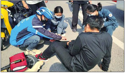 2025年9月16日,骑手王景峰送餐至城区某小区,一阵急遽的呼救声传来,一位老东谈主头部受伤,血流不啻,家属昆仲无措。王景峰坐窝停稳电动车,取出急救包,按照培训经由计帐创口、按压止血,轻声安抚老情面绪,全程防守至救护车抵达。因救助延误了送餐时分,他主动向客户讲明情况,却成绩了满屏的交融与点赞。“订单超时不错赔付,人命眼前,咱们莫得退路。”王景峰的聘任,是“红盾骑士”们共同的信守。