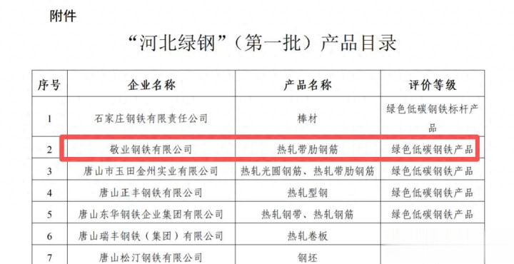 近日,河北省工信厅发达发布首批“河北绿钢”认证名单,敬业钢铁有限公司“热轧带肋钢筋”绿色居品告捷入选,这一荣誉秀丽着公司在绿色低碳转型说念路上迈出坚实一步。