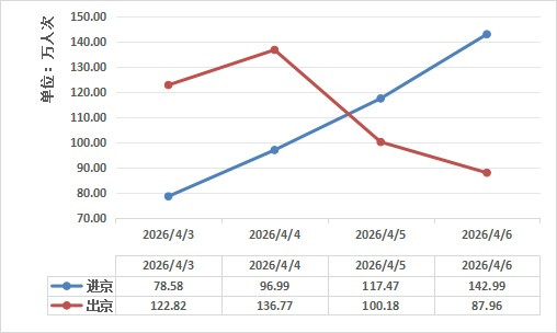 公路网跨省自驾特征:2026年晴明时期,瞻望公路网自驾收支京东说念主流量呈现“前出后进”的特征,日均东说念主流量227.45万东说念主次,环比平日增长61.96%,较旧年同时上升7.67%,其中进京119.15万东说念主次,出京108.30万东说念主次。瞻望高速公路网自驾收支京东说念主流量日均151.64万东说念主次,环比平日增长102.82%,同比上升10.10%,其中进京73.35万东说念主次,出京78.29万东说念主次。肤浅公路网自驾收支京东说念主流量日均75.81万东说念主次,环比平日增长15.44%,同比增长3.12%,其中进京45.80万东说念主次,出京30.01万东说念主次。