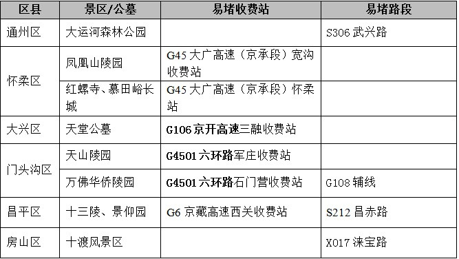 晴明时期,通往大型义冢陵寝、热点景点附进路段、收费站岑岭时段易出现车流聚集表象。