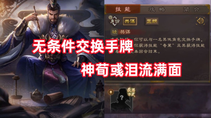 这样看来,桓阶不错研究与队友或者敌东说念主交换手牌,把柄所在的不同继承的对象也雷同不错不同。若是后置位有神曹操、神荀彧、崔芙这种回合外一大把牌的武将,那么桓阶大不错用我方手上的四张牌去换他们的牌,与明抢无异。若是场上扫数东说念主手牌齐不是很较着,那么就要把柄我方现在手上的牌来想考若何发动妙技了。