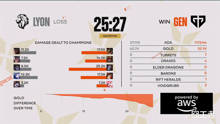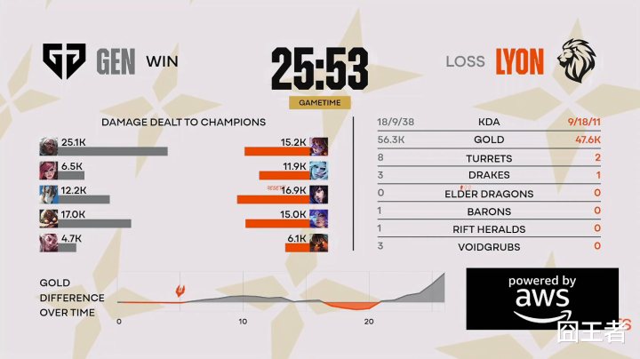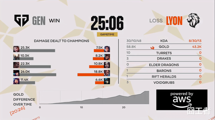 甘休第三局比赛,又被GEN打成了速通局。3分钟,Ruler女警夹子立大功,Berserker思要掩护反被击杀;5分钟,逆counter单杀,kiin杰斯平缓单杀Dhokla刀妹;7分钟,梅开二度,Dhokla主动出击再次被kiin平缓单杀;11分钟,kiin杰斯传送落地一忽儿扭转战局,无缺手段开释助GEN团战取胜;13分钟,Duro妮蔻实时营救,Dhokla刀妹惨遭无尽冲突;15分钟,LYON世东谈主集火击杀Ruler,随后GEN中野伤害爆炸瞬秒LYON下路;最终25分06秒,GEN最初拿下大龙,随后GEN团战残局贬责更优取胜,团灭LYON后,获得比赛。