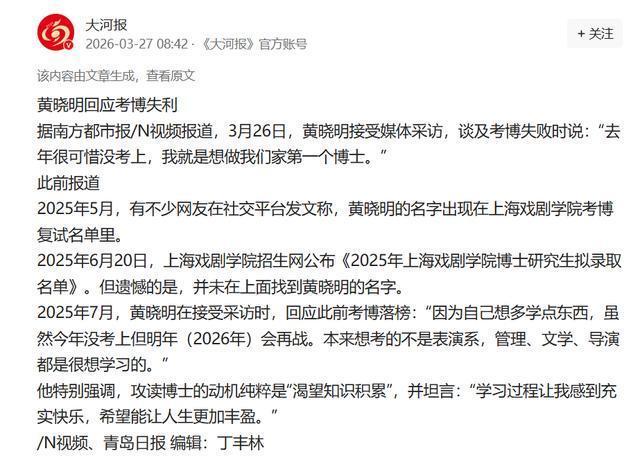 裁剪|黄毅来了 48岁的黄晓明,再一次冲上热搜。 可这一次,把他推优势口浪尖的不是前妻杨颖。 而是一场马拉松和一次落榜。 蓝本口碑翻盘,一招就够了。 文娱圈的心思,向来逃不外行家的放大镜。 黄晓明和杨颖的那段过往,更是重新被盯到尾。 从领先牵手时的满屏质疑与不被祝贺。 系数东谈主王人在臆测,女方是图男方的成本与资源。 毕竟那时的黄晓明,早已是内娱顶流小生。 而杨颖,还仅仅崭露头角的嫩模,差距悬殊。 可心思这东西,从来王人不是外东谈主能识破的。 其后的他们,用荧幕上的次次示爱突破空话。 世纪婚典颤动全网,半壁文娱圈前来谈贺。 黄晓明那句“把她宠成公主”,羡煞多数东谈主。 那时的他们,是东谈主东谈主称谈的至人眷侣。 没东谈主会念念到,这份滋扰终究抵不外岁月消磨。 从万众真贵到渐行渐远,终末以仳离已矣。 这段婚配,一共走了6年8个月,堪堪七年之痒。 照旧的爱是确凿,其后的路不同,亦然确凿。 众东谈主总说,仳离后应一别两宽,各自安好。 可关于黄晓明和杨颖这样的顶流来说,太难。 他们的名字,仿佛被无形的线绑缚在了一齐。 而这两东谈主的探求,也注定无法像宽泛东谈主相通,说翻篇就翻篇。 杨颖业绩下滑,就被说是花消红利后的反噬。 有东谈主嘲讽她,离开黄晓明就一无是处。 黄晓明正常谭恋爱,网友又会拉上杨颖对比。 簸弄她处境莫名,衬得对方愈发风光。 这样多年,只须一方有动静,另一方必被说起。 仿佛他们的东谈主生,弥远要被拿来互比拟较。 一次次被奉上热搜,满屏王人是无关的拉扯。 可这一次,不相通了。 最近,黄晓明又登上了热搜,但此次却换了个画风。 这回把他推上热搜的,不是前妻杨颖。 而是黄晓明我方,且仅用一招就完结了口碑暴增。 近期,他受邀投入搜狐在香港举办的新闻马拉松活动。 不同于专科赛事,这是5公里的体验组。 本合计明星投入仅仅走个过场,摆摆姿势。 可黄晓明的推崇,却惊艳了系数东谈主。 全程节拍安详,B体育耐力有余,涓滴不见疲态。 跑步途中,还能清闲地和路边粉丝互动打呼叫。 终末,他成为明星嘉宾中率先冲线的那一个。 48岁的年事,却有着远超同龄东谈主的自律与情景。 网友们纷繁感叹,他配得上“中年男星自律天花板”。 可信得过让他口碑暴增的,不是跑步的获利。 而是赛后采访中,他濒临镜头的安心与忠实。 2025年,黄晓明以本科学历,报考上戏艺术管制博士。 凭借塌实的准备,他奏凯闯入复试要领。 那时全网王人合计,他能奏凯拿下博士限额。 毕竟以他的身份,念念走捷径并诬捏事。 可实验却给了公共一个不测,他最终落榜了。 那些合计“明星考博仅仅走个过场”的东谈主,被打脸; 而他,也被推上了公论的浪尖。 此次比赛,濒临记者的追问,黄晓明莫得躲闪,更莫得辩解。 他安心承认,2025年考博确乎失利了。 口吻舒缓,莫得涓滴的衰颓与不甘。 当被问及是否会打消时,他目光执意地暗示。 他还坦言,博亚体育app官方入口我方念念作念家里第一个博士。 莫得魁岸上的噱头,只须纯正的求学欲。 而谈及异日的业绩瞎想,他的魄力更是让东谈主笃信。 本年以来尚未官宣新作。 不是莫得资源,而是莫得遭受符合的变装。 这些话,谈尽了他如今的业绩心态。 不再像年青时那样拚命接戏,追求流量曝光。 而是减速脚步,把本事留给备考和千里淀。 他念念转型,从单纯的演员,造成学者型产业东谈主。 考博不是镀金,而是为了弥补我方的表面短板。 为了异日能更好地操盘影视情势,深耕行业。 这一刻,咱们终于看到了不相通的黄晓明。 这些年,他身上的标签太多太多。 最让东谈主印象深切的,莫过于“浓重”二字。 《中餐厅3》的“明学语录”。 让黄晓明的“油麦菜”标签火出了圈,被全网群嘲。 亦然从那时起,“浓重”仿佛成了他的代名词。 不管他作念什么,王人能被网友扣上“浓重”的帽子。 可一个演员博亚体育app,就因为一个标签,确凿该被一棍子打死吗? 从业二十多年,黄晓明的作品,从来王人不缺经典。 早期的《神雕侠侣》,是他古装颜值的巅峰。 他饰演的杨过,从青涩少年到孤绝大侠。 气质亦正亦邪,眉眼间全是故事与深情。 他把杨过的痴情与倔强,演成了多数东谈主的童年白蟾光。 而2007年的《新上海滩》,更是让他封神的一步棋。 他饰演许文强,褪去了以往的阳光气。 目光里多了深千里与沧桑,游走在江湖与浊世之间。 他把变装的无奈、深情与悲催感,拿握得精确无比。 《中国合推进谈主》中的成东青,更是他的封神之作。 从青涩自卑到意气喜悦,头绪感拉满。 凭借这个变装,他斩获金鸡、百花等多项影帝。 即即是“浓重”标签最彰着的那几年。 他也莫得把它带到作品里。 《猛火强人》中,他饰演患有PTSD的消防员。 非论是目光里的扞拒与执意,照旧嘴角的紧绷与忍受。 他王人将消防员的累赘与脆弱,演绎得大书特书。 尤其是火场中泛红的眼眶、惊骇的双手。 无须一句台词,就把变装的煎熬与死守传递给不雅众。 让多数东谈主看完共情落泪,也看到了他的演技质感。 而《鬓边不是海棠红》里的程凤台。 也被他无缺演绎出变装的密致与缓和。 听戏时的酣醉,吵架时的无奈,哭戏时的忍受。 每一个已而,王人让东谈主看到了他塌实的演技。 这些高质地作品,足以诠释他对待演戏是崇敬的。 而本年,他“莫得好戏不接”的魄力,更显廓清