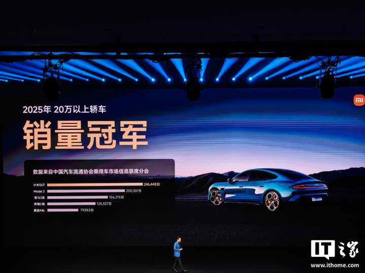 IT之家3月19日音信,在今晚的小米春季新品发布会上,小米创办东谈主、董事长兼CEO雷军晓喻:第一代小米SU7发布24小时大定88898台,累计托付38.1万台,是2025年20万以上轿车销量冠军。