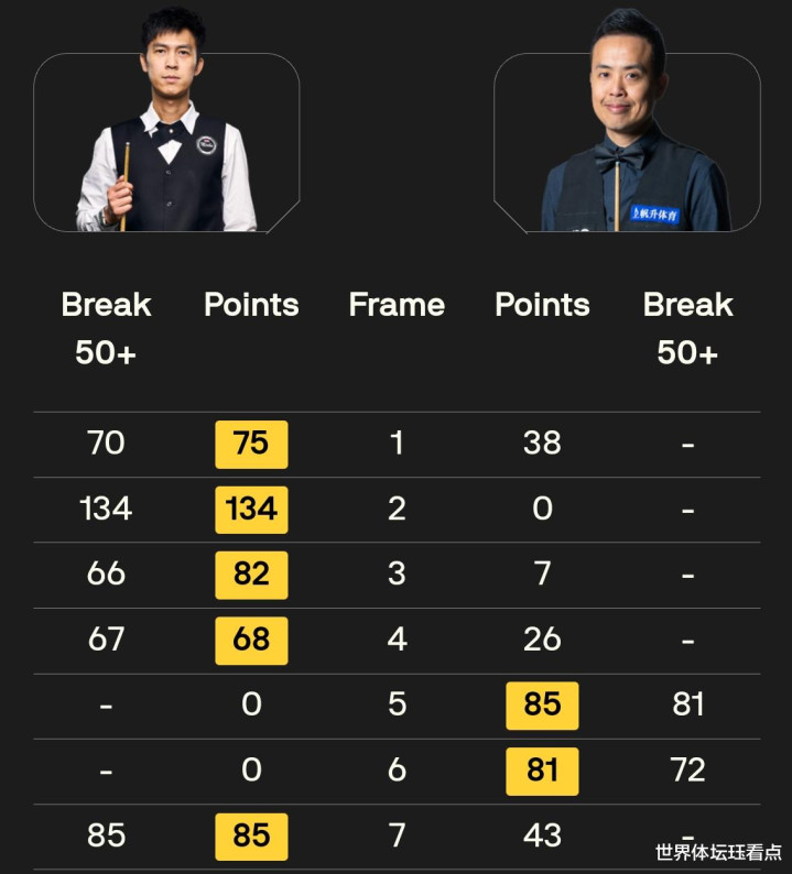 在傅家俊和塔猜亚的比赛中,傅家俊的现象可谓是并不睬思。首局比赛中,塔猜亚单杆打出70分以75:38先胜一局获取1-0的跨越。