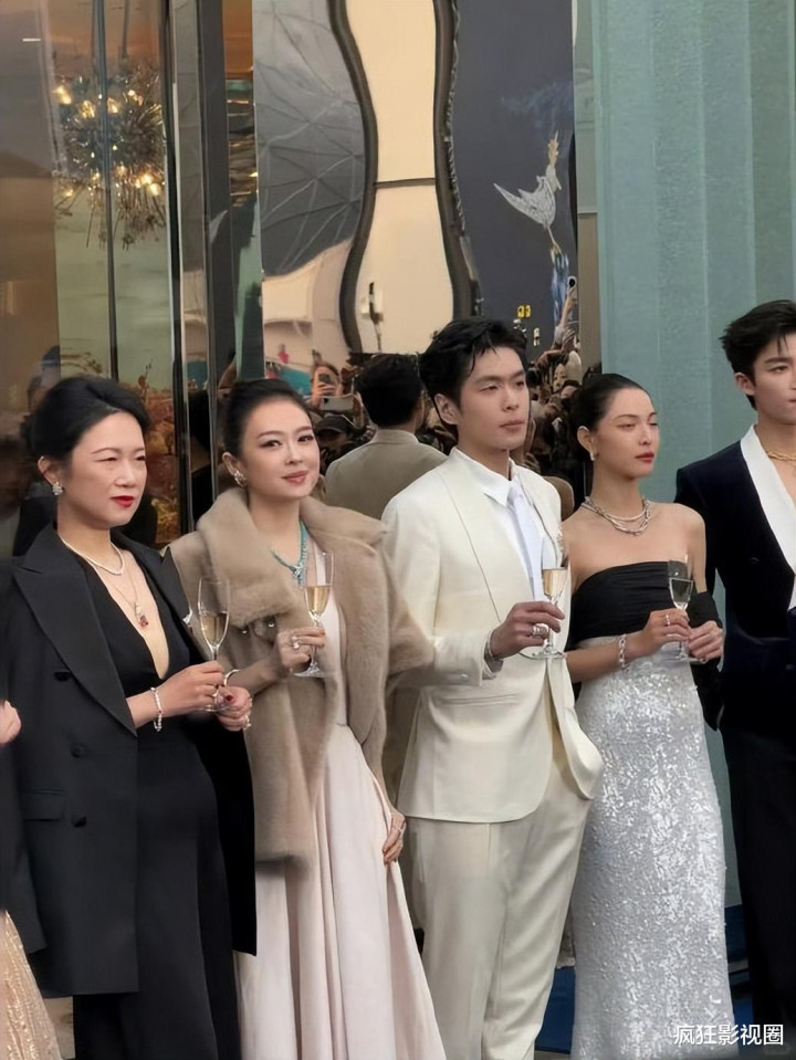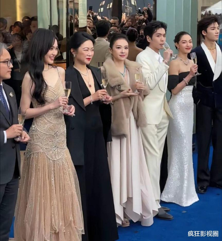 今日行径星光熠熠,除了章子怡外,还有品牌代言东谈主唐嫣、张若昀,以及品牌大使锺楚曦、王星越、宋雨琦和李昀锐同台剪彩。
