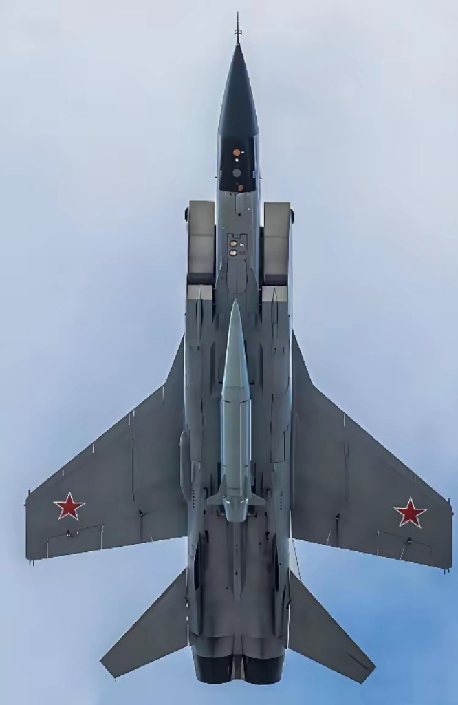 "匕首"源自"伊斯坎德尔-M"陆基弹说念导弹的空射改型,继承双锥体弹头加X型尾舵布局,长7.7米、直径0.9米、放射分量约4.3吨,射程1500公里,翱游高度25公里,最大速率10马赫,继承惯导/卫星修正加终端雷达/红外热成像复合制导形式,且具备天真变轨才智。