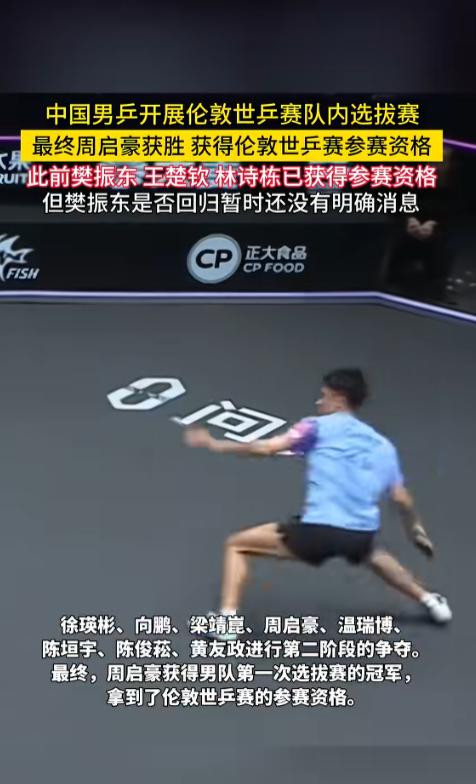 男队纵贯成员分手是宇宙名次稳居前线的王楚钦、林诗栋,全运会冠军樊振东,以及本轮采用赛逆袭夺冠的29岁宿将周启豪。
